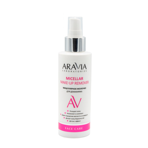 ARAVIA ( АРАВИЯ ) Нежное мицеллярное молочко предназначено для бережного и тщательного очищения кожи лица, глаз и губ от макияжа. Эффективно и бережно удаляет даже водостойкий макияж. Кожа становится мягкой, нежной и бархатистой. Комплекс активных компонентов в составе способствует омоложению и регенерации кожи, оказывает антиоксидантное и антибактериальное воздействие, питает и смягчает кожу. Молочко придает коже здоровое сияние, свежий и ухоженный вид.