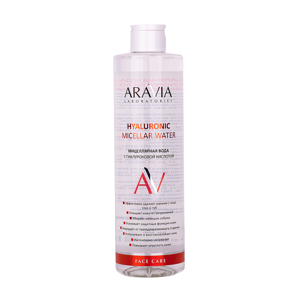 ARAVIA ( АРАВИЯ ) Мицеллярная вода бережно и эффективно удаляет макияж с лица, глаз и губ. Уникальная формула очищает, увлажняет, успокаивает и восстанавливает кожу. Легко удаляет все виды тональных основ, водостойкий макияж, другие загрязнения и излишки себума. Способствует сохранению влаги в коже. Защищает от преждевременного старения, повышает упругость. Делает кожу гладкой, мягкой и шелковистой, дарит ощущение свежести и комфорта. Подходит для всех типов кожи.