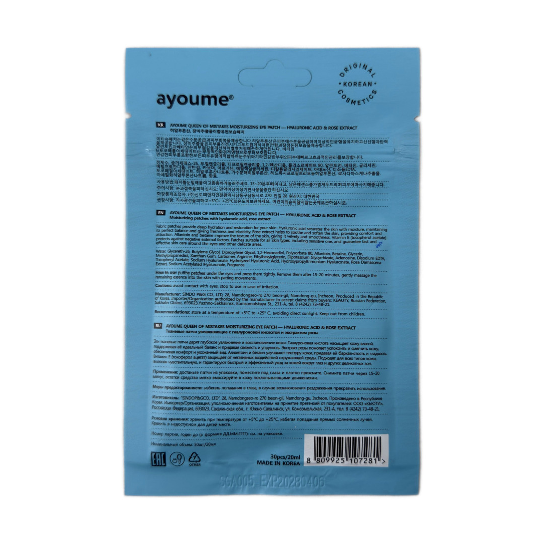 AYOUME QUEEN OF MISTAKES АЮМИ Патчи для глаз тканевые увлажняющие Королева ошибок Moisturizing Eye Patch 20 мл 30 шт / ***НЕ ДЛЯ ПРОДАЖИ НА МП (по запросу)****