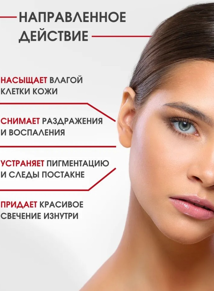 Гиалуроновая кислота глубоко увлажняет кожу, сохраняя влагу внутри, препятствует обезвоживанию и сухости, а также способствует сохранению гладкости и упругости кожи.