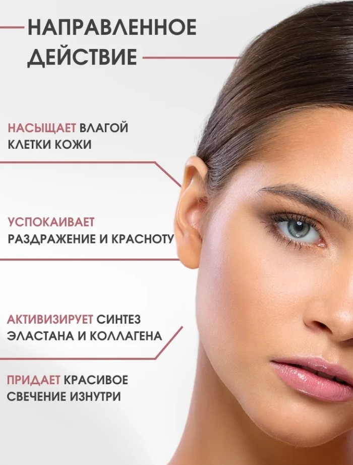Увлажняет кожу, устраняет сухость и стянутость, препятствует обезвоженности.
