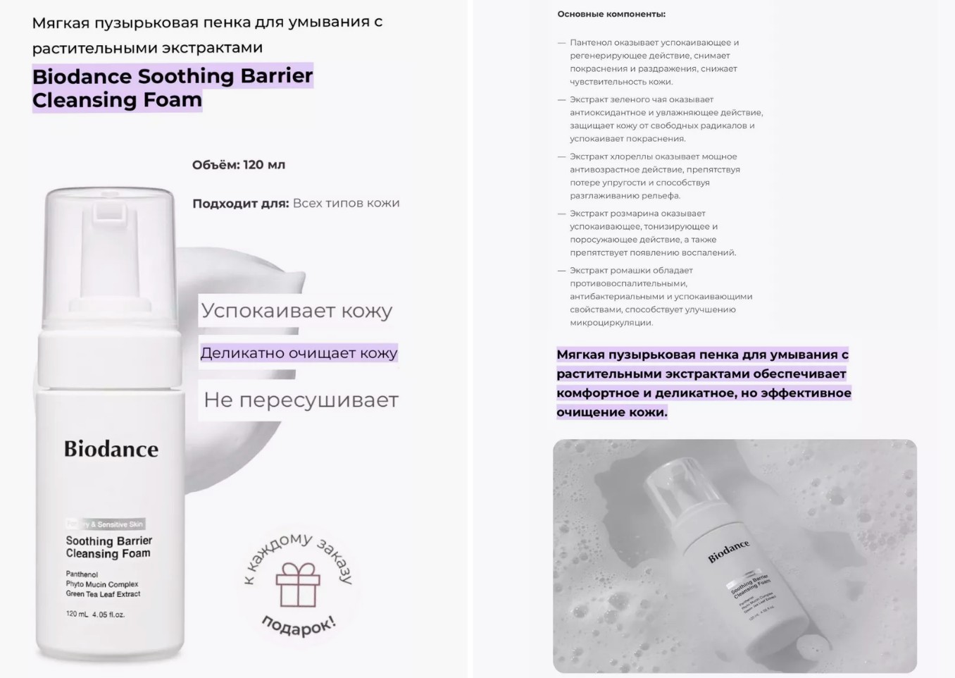Мягкая пузырьковая пенка для умывания с растительными экстрактами обеспечивает комфортное и деликатное, но эффективное очищение кожи.