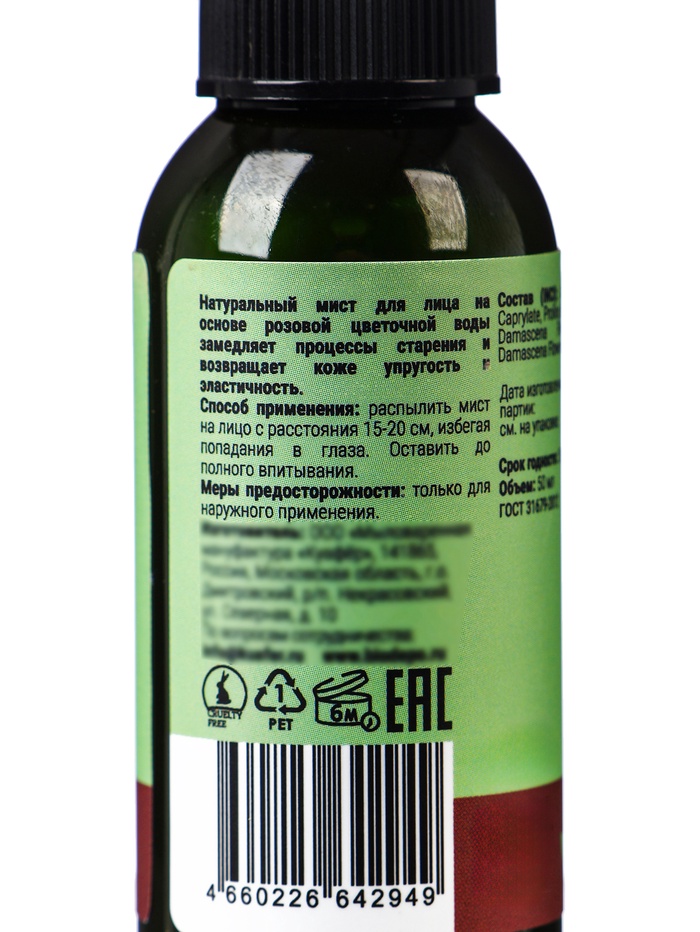 Способ применения: Распылить мист на лицо с расстояния 15-20 см, избегая попадания в глаза. Оставить до полного впитывания.