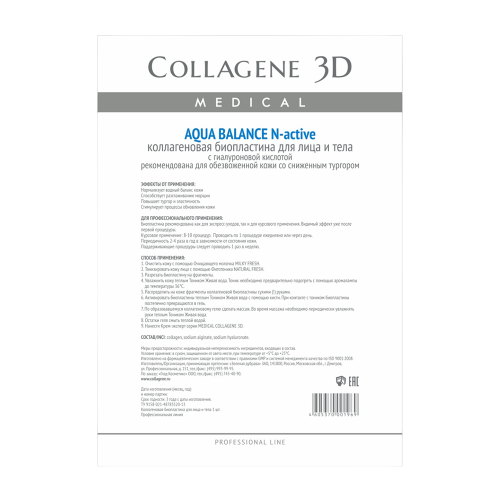 Биопластины коллагеновые с гиалуроновой кислотой для лица и тела / Aqua Balance А4 MEDICAL COLLAGENE 3D ( Медикал коллаген )