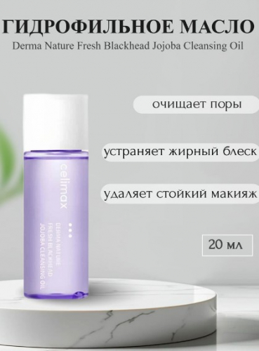 Гидрофильное масло Celimax Derma Nature Fresh Blackhead Jojoba Cleansing Oil удаляет загрязнения, излишки себума, чёрные точки, смывает стойкий макияж.