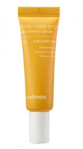 Сыворотка CelimaxPore+Dark Spot Brightening Serum деликатно осветляет пигментные пятна, постакне, сальные нити. Сужает поры, выравнивает тон и текстуру кожи, придаёт естественное сияние.