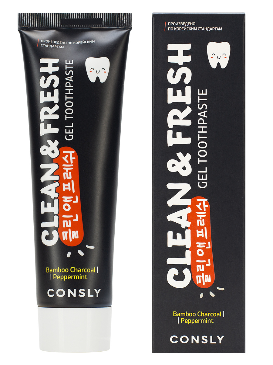 150рCONSLY Clean&Fresh Bamboo Charcoal & Peppermint Gel Toothpaste Гелевая зубная паста Clean&Fresh с бамбуковым углем и перечной мятой 105г