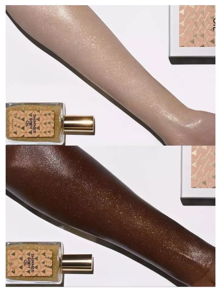 Шиммер для тела придает коже осязаемое, шелковисто-мягкое ощущение, имеет нежный кокосово-ванильный аромат и обладает мерцающим блеском, который освещает кожу золотым сиянием.​ Масло хайлайтер для тела с шиммером имеет эффект моментального загара. Масла в составе отлично увлажнят чувствительную, сухую кожу. Блеск выгодно подчеркнет ваши достоинства и скроет недостатки, мелкие неровности, целлюлит. Масло для тела с блестками подарит коже увлажнение, мягкость и свежесть. После нанесения масла благодаря аромату ваша кожа будет пахнуть как после парфюма. Подойдет, как для тела так и для лица, волос.