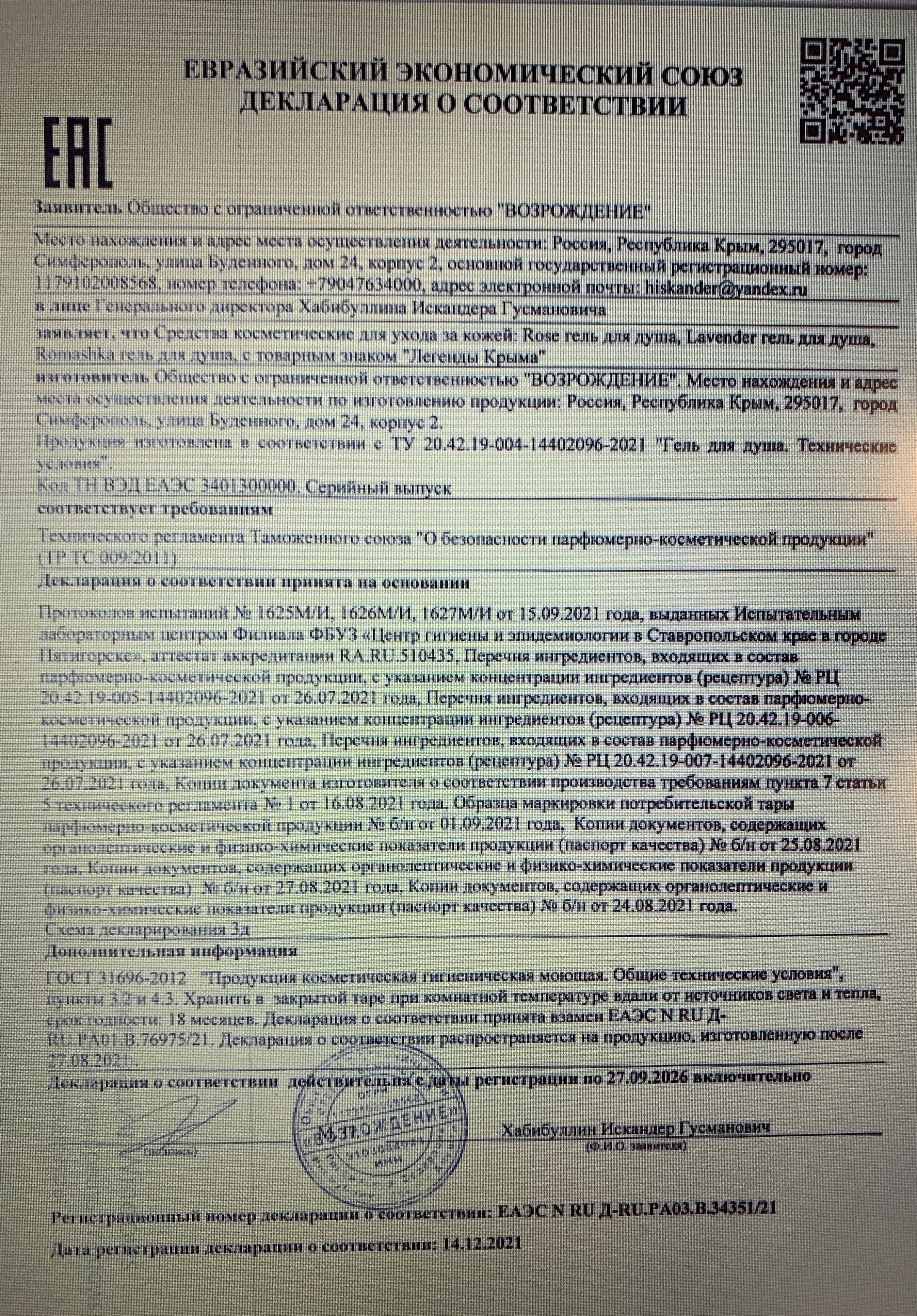 Отзывы и вопросы о товаре «ЛЕГЕНДЫ КРЫМА Гель для очищения кожи лица Romashka Церамид Пребиотик 130мл»