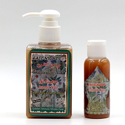 Состав: оливковая эмульсия оливки сирийского сорта Абу-Сатл (Olive Emulsio), масла: камелия сасанква семена (Camellia sinensis), морковь посевная семена (Daucus carota), жожоба семена (Simmondsia chinensis), масла СО2 докритического экстрагирования: мелисса лекарственная листья (Melissa officinalis), имбирь лекарственный корень (Zingiber officinale), эвкалипт шаровидный листья (Eucalyptus globulus), мирт медовый листья (Myrtus nivelii), душица сирийская листья (Origanum syriacum), иглица колючая корень (Ruscus aculeatus), пудра: агар- агар слоевища (Ceramium), сапонины: белый туркестанский мыльный корень (Allochrusa gypsophiloides), гидролат паровая дистилляция сырья: каффир лайм соцветия (Citrus hystrix), эмульгация и консервация: занзибарский копал смола (Hymenaea courbaril). *с указанием подвидов растений