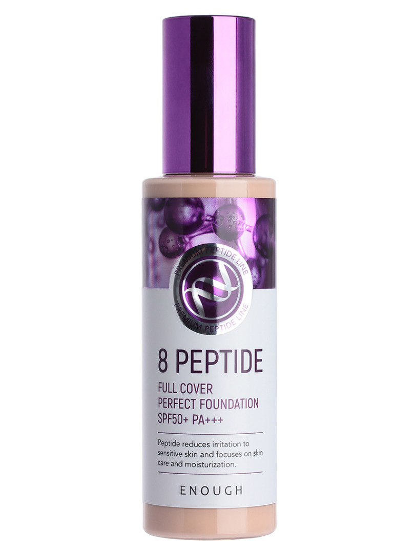 Изготовитель: Enough Co.Ltd., КОРЕЯ, РЕСПУБЛИКА, 6, Dangsan-ro 135beon-gil, Gunpo-si, Gyeonggi-do. Тональный крем с пептидами с самым высоком фактором защиты от солнца. Отлично подойдет для любой кожи, даже для чувствительной. Пептиды регулируют физиологические и биохимические процессы в клетках кожи, пробуждают «спящие » клетки, ускоряют деление и передвижение к поверхности кожи новых молодых клеток. Пептиды стимулируют синтез коллагена и процессы регенерации, улучшают микроциркуляцию крови, благодаря чему кожа обретает упругость, контролируют образование меланина и предотвращают появление пигментации. Способ применения: нанесите необходимое количество тонального средства и равномерно растушуйте, используя специальный спонж или подушечки пальцев.