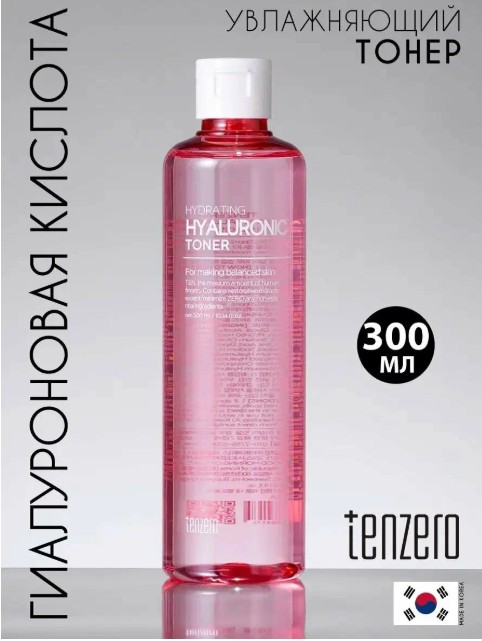 TENZERO Увлажняющий тонер с гиалуроновой кислотой Hydrating Hyaluronic Toner — роскошное увлажнение для сухой, обезвоженной и увядающей кожи. Косметическая формула на основе гиалуроновой кислоты 8 видов увлажняет глубокие слои эпидермиса, восстанавливая его защитный барьер, даря приятное чувство свежести и тонуса.