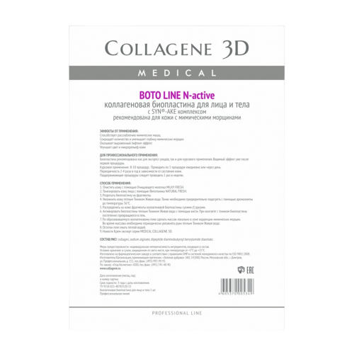 MEDICAL COLLAGENE 3D Коллагеновая маска для лица Boto Line с Syn-ake комплексом обеспечивает эффективную коррекцию мимических морщин. Комплекс Syn-ake блокирует сокращение мимических мышц, что приводит к естественному разглаживанию кожи.