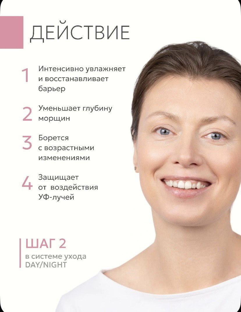 Дневной крем создан для мягкого увлажнения и поддержания комфорта кожи в течение всего дня. Он помогает сохранять оптимальный уровень увлажнённости, не забивает поры и подходит для сухой и нормальной кожи, в том числе при первых признаках возрастных изменений. Крем можно использовать как самостоятельное средство ухода или наносить в качестве основы под макияж.