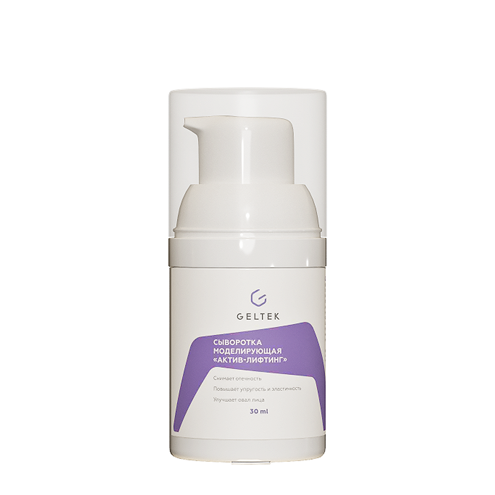 ГЕЛЬТЕК Сыворотка моделирующая Актив-лифтинг обладает липолитическим и выраженным подтягивающим эффектом, выравнивает контур лица и делает его овал более очерченным.