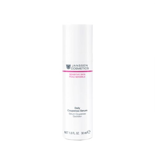 JANSSEN ( Янсен ) Нежная, легкая сыворотка Daily couperose serum с оптимальным сочетанием активных ингредиентов специально разработана для кожи с проявлениями купероза и начальной стадии розацеа. Комплекс Sensitive снимает раздражение и укрепляет капилляры, оказывает противовоспалительное и противоаллергическое, а также антиоксидантное действие, уменьшает покраснение и выраженность сосудистой сеточки. Исследования с участием контрольной плацебо-группы показывают уменьшение покраснения кожи более чем на 30% после использования комплекса 2 раза в день, количество сосудистых звездочек уменьшается на 20%.