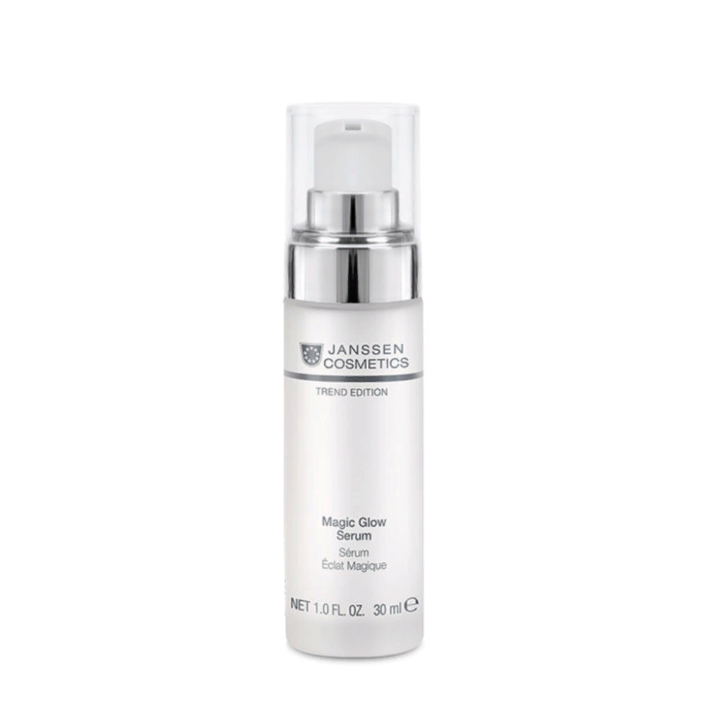 JANSSEN ( Янсен ) Невесомый флюид жемчужного цвета ложится на кожу воздушной вуалью, моментально насыщая её влагой, разглаживая морщинки, наделяя изумительно красивым, настоящим «магическим» сиянием. С каждым применением кожа выглядит всё лучше – безупречно гладкой, отлично увлажненной, отдохнувшей, ухоженной. Увлажняющая anti-age супер-сыворотка Magic Glow Serum придаёт коже мгновенное сияние и освежает цвет лица.