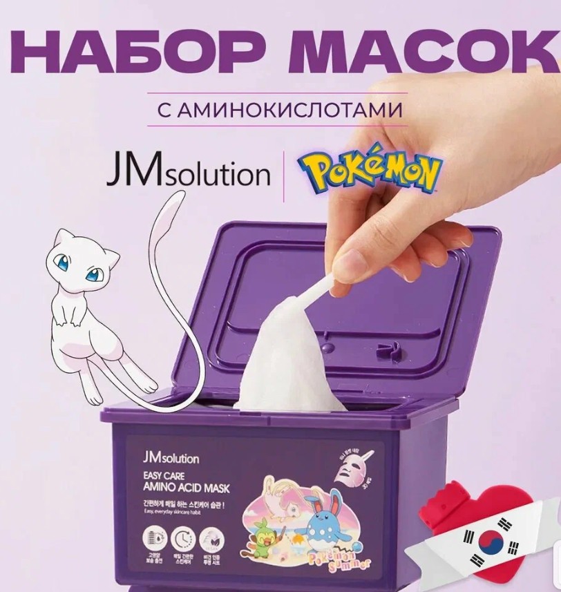 Набор тканевых масок JMsolution Easy Care Amino Acid Mask Pokemon Summer – это отличный выбор для тех, кто ищет качественные и эффективные средства для ухода за кожей.