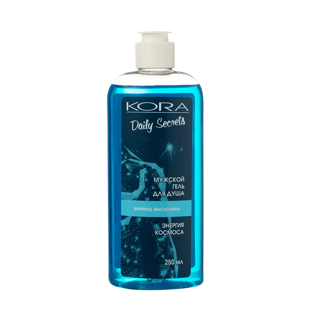 KORA ( КОРА ) Активная формула мужского геля для душа тщательно очищает и увлажняет кожу, а бодрящий аромат свежести задает настроение на весь день. Эфирное масло мяты способствует снятию усталости и заряжает энергией, обеспечивает приятный охлаждающий эффект.