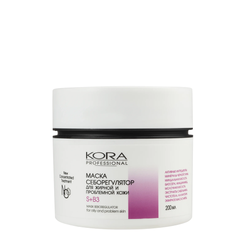 KORA ( КОРА ) Маска себорегулятор для жирной и проблемной кожи предназначена для проведения салонных и домашних процедур ухода за жирной и проблемной кожей, склонной к акне. Оказывает бактерицидное, противовоспалительное, восстанавливающее и успокаивающее действие. Очищает, сужает поры.