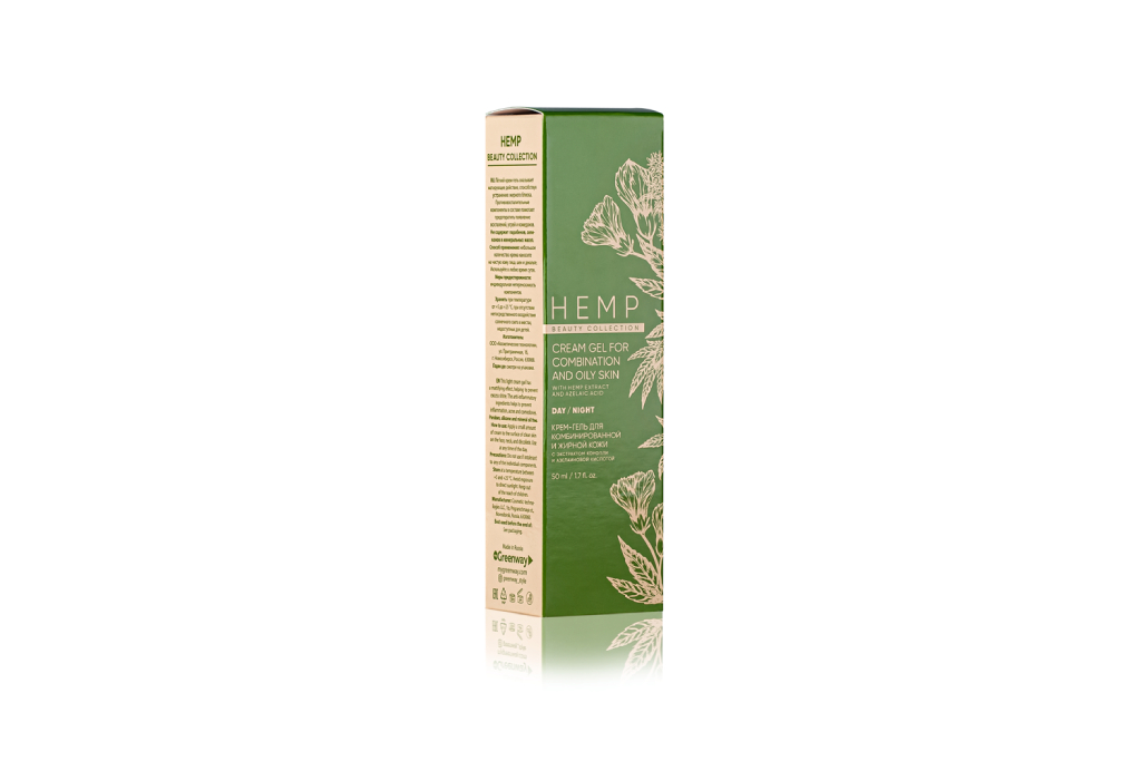 Матовая роскошь кожи доступна каждой! Легкий крем-гель оказывает матирующее действие, способствуя устранению нежелательного жирного блеска. Противовоспалительные компоненты в составе помогают предотвратить появление воспалений, угревой сыпи и комедонов. Средство освежает кожу, делает ее гладкой, мягкой и бархатистой. Активные компоненты крем-геля эффективно поглощают излишек кожного жира, сокращают поры, уменьшают активность сальных и потовых желез. Блистайте по жизни без блеска на лице! Также попробуйте пройти бесплатную диагностику в сервисе FaceScan.pro . Нейросеть выявит особенности кожи и выдаст оптимальный список косметики компании. Натуральный секрет молодости раскрыт! Средства линии HEMP BEAUTY COLLECTION созданы для сохранения красивой и здоровой кожи в любом возрасте. В их основе лежит конопляное масло холодного отжима, богатое полиненасыщенными жирными кислотами и витаминами, а также специально подобранные активные компоненты. АКТИВНЫЕ КОМПОНЕНТЫ Экстракт конопли (Cannabis Sativa Seed Extract) Конопляное масло является хорошим транспортом для всех жирорастворимых компонентов, усиливает их эффект. Благодаря высоким проникающим свойствам активные ингредиенты доставляются в глубокие слои эпидермиса, активно восстанавливают гидролипидный баланс кожи, обеспечивая ее упругость и гладкость. В конопляном масле большое количество биологически активных веществ, обладающих следующими свойствами: противовоспалительными; регенерирующими; антисептическими; антиоксидантными; солнцезащитными. Экстракт магнолии (HerbEx™ MagnoSoother) Магнолия насыщена флавоноидами и полифенолами. Однако особого внимания в составе заслуживает высокая концентрация биологически активных молекул магнолола (25%) и хонокиола (60%). Эти фитосоединения помогают уменьшить сосудистые сеточки и звездочки, а также темные круги под глазами. Магнолия в косметике: оказывает успокаивающее действие; снимает кожные воспаления; имеет антисептический эффект; помогает уменьшить купероз, сосудистые сеточки и звездочки, а также темные круги под глазами; защищает кожу от негативного воздействия ультрафиолета. Гиалуронат натрия ( Sodium Hyaluronate) – элемент гиалуроновой кислоты, входящий в современные косметические средства по уходу за эпидермисом. Гиалуронат натрия в косметике используется наряду с гиалуроновой кислотой. Основное отличие – молекулярный размер. Гиалуронат натрия представляет собой низкомолекулярную структуру, т.е. он является структурным компонентом гиалуроновой кислоты и, следовательно, имеет гораздо меньшие молекулярные размеры. Основное свойство гиалуроната натрия – удержание влаги в структуре кожи и притягивание ее из внешней среды, что в целом оказывает благотворное влияние. Гиалуронат натрия: способствует увлажнению кожных покровов; стимулирует работу фибробластов; устраняет воспалительные процессы при угревой болезни и акне; доставляет питательные элементы в глубокие слои эпидермиса; защищает кожу от неблагоприятного воздействия окружающей среды. Азелаиновая кислота ( Azelaic Acid) – один из лучших компонент для жирной и проблемной кожи. Азелаиновая кислота проникает глубоко в кожу, уплотняя верхний роговой слоя эпидермиса. Кроме того, она способствует глубокому очищению кожи. Азелаиновая кислота хорошо изучена, имеет доказанную исследованиями эффек