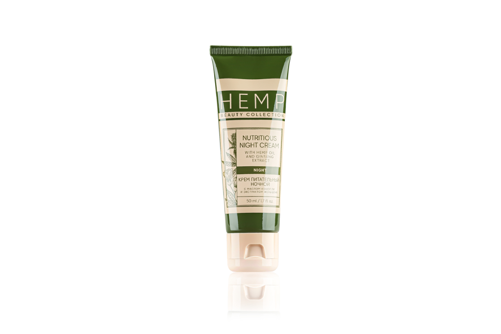 Ночной рацион для вашей кожи. Крем для интенсивного питания с маслом конопли и экстрактом женьшеня способствует усилению синтеза коллагена, уплотнению дермы и разглаживанию кожи. Крем с приятной тающей текстурой увлажняет кожу, возвращает ей здоровое сияние и оказывает комплексное антивозрастное действие. Наслаждайтесь эффективным ночным уходом с приятным натуральным ароматом, дарите коже лучшее! Также попробуйте пройти бесплатную диагностику в сервисе FaceScan.pro . Нейросеть выявит особенности кожи и выдаст оптимальный список косметики компании. Натуральный секрет молодости раскрыт! Средства линии HEMP BEAUTY COLLECTION созданы для сохранения красивой и здоровой кожи в любом возрасте. В их основе лежит конопляное масло холодного отжима, богатое полиненасыщенными жирными кислотами и витаминами, а также специально подобранные активные компоненты. АКТИВНЫЕ КОМПОНЕНТЫ Экстракт конопли (Cannabis Sativa Seed Extract) Конопляное масло является хорошим транспортом для всех жирорастворимых компонентов, усиливает их эффект. Благодаря высоким проникающим свойствам активные ингредиенты доставляются в глубокие слои эпидермиса, активно восстанавливают гидролипидный баланс кожи, обеспечивая ее упругость и гладкость. В конопляном масле большое количество биологически активных веществ, обладающих следующими свойствами: противовоспалительными; регенерирующими; антисептическими; антиоксидантными; солнцезащитными. Масло ши (Butyrospermum Parkii (Shea) Butter) – уникальный комплекс мононенасыщенных (олеиновая, линолевая) и насыщенных (стеариновая) жирных кислот, необходимых коже для сохранения тургора, упругости, эластичности и молодости. Масло ши: способствует увлажнению кожи, препятствуя испарению влаги; питает кожу; улучшает регенерацию клеток; оказывает мощное защитное действие. Экстракт женьшеня ( HerbEx™ Korean Ginseng Extract) – популярный компонент омолаживающей косметики, пользующейся огромной популярностью не только в Азии, но и по всему миру. Пользу для лица в женьшене оказывает высокое содержание сапонинов. Эти сложные органические соединения из гликозидов растительного происхождения оказывают: мощное регенерирующее и противовоспалительное действие; обеспечивают полноценный метаболизм и энергетический баланс клеток кожи; снижают воспалительные процессы, происходящие в кожных покровах; защищают эпидермис от неблагоприятного воздействия окружающей среды. Экстракт граната (HerbEx™ Pomegranate Extract) Гранат уникален по своему составу, и его применяют не только в медицине, но и в косметологии. Научно установлено, что антиоксиданты, содержащиеся в гранате, в несколько раз активнее тех, что содержатся в китайском зеленом чае или красном сухом вине. Они надежно защищают кожу от свободных радикалов, сохраняя ее молодость и здоровье. Пуникалагин — антиоксидант, присутствующий только в гранате, обеспечивает коже защиту от воздействия токсинов и замедляет процесс старения почти вдвое. В косметике гранат оказывает следующие действия: антиоксидантное, стимулирует синтез коллагена, увлажняет, витаминизирует кожу, восстанавливает липидный барьер кожи. Товар, требующий специального температурного режима. Способ применения: небольшое количество крем наносите на чистую кожу лица, шеи и декольте вечером. Хранить при температуре от +5 до +25 °С, при отсутствии непосредственно