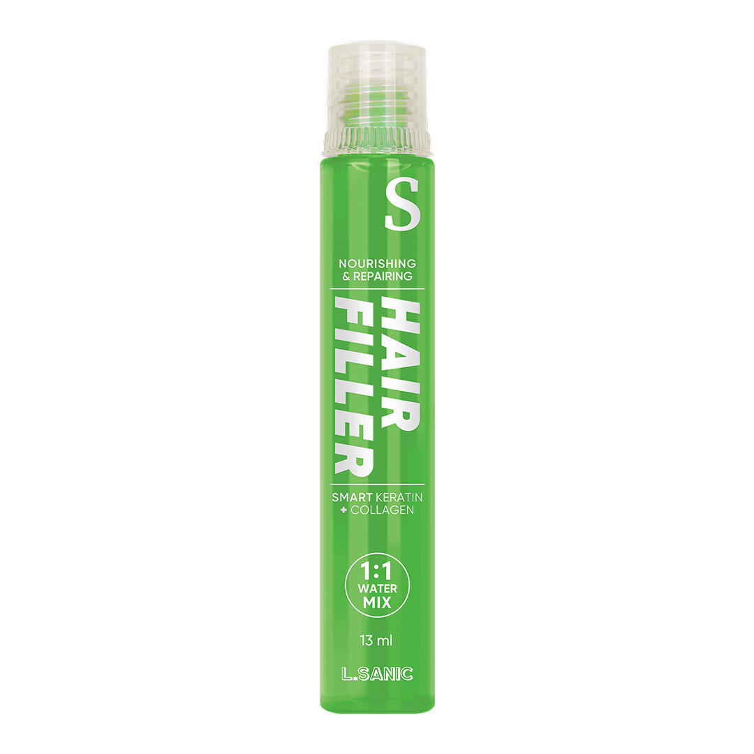 Восстанавливающий филлер для волос с гидролизованным кератином, коллагеном, комплексом растительных протеинов и экстрактами камелии и хурмы — интенсивный уход для ослабленных, сухих, ломких, окрашенных и повреждённых волос. Филлер глубоко питает и восстанавливает волосы, придаёт им мягкость, эластичность и естественный блеск. Средство разглаживает волосы, устраняет спутанность и значительно облегчает расчёсывание. Гидролизованный кератин — главный структурный белок волос, отвечающий за их прочность и эластичность. В составе филлера он заполняет повреждённые участки, восстанавливает структуру волоса изнутри и придаёт гладкость и блеск. Гидролизованный коллаген удерживает влагу, улучшает текстуру волос и делает их более мягкими и шелковистыми. Экстракт камелии увлажняет и смягчает волосы, делая их более послушными. Комплекс растительных протеинов (пшеницы, кукурузы и сои) укрепляет волосы, делает их более упругими и защищает от ломкости и сечения, а экстракт хурмы обладает антиоксидантными свойствами, защищая волосы от негативного воздействия окружающей среды. Уже после первого применения волосы выглядят более сильными, гладкими и ухоженными. Шелковистость, увлажнение и здоровый блеск.
