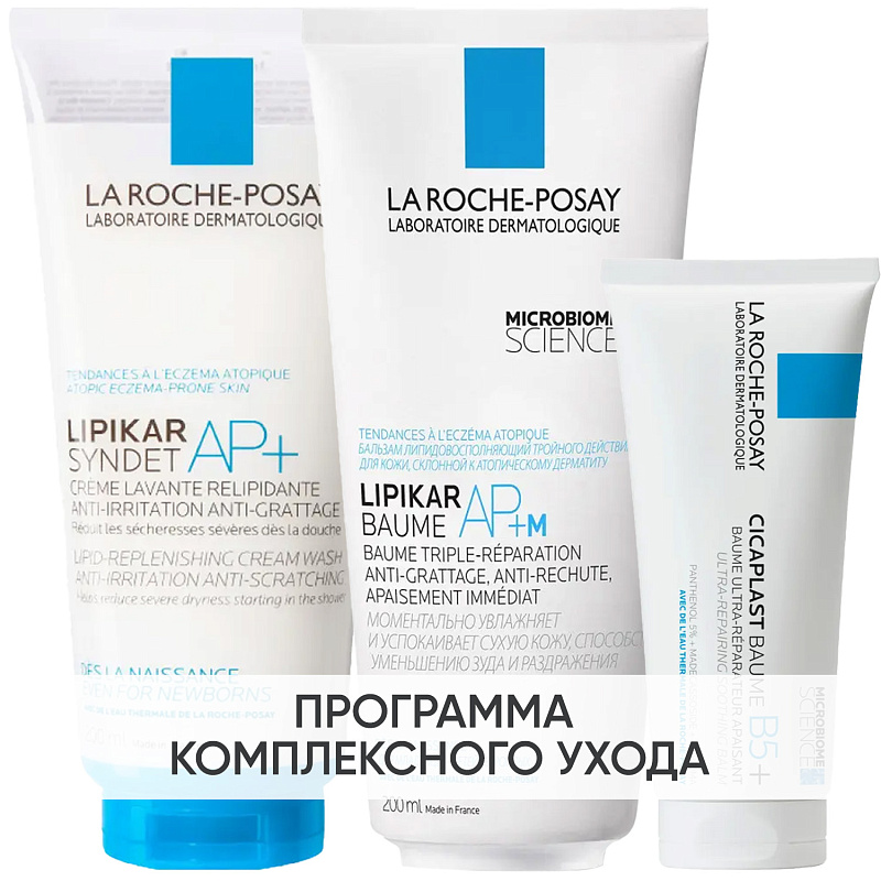 ПРОГРАММА КОМПЛЕКСНОГО УХОДА La Roche-Posay Lipikar для очень сухой и склонной к атопии кожи. Комплексный уход представляет собой дополняющие друг друга средства, совместное использование которых будет максимально эффективным. Первым шагом такой программы всегда является очищение, вторым - основной уход. Третьим шагом может стать дополнительный уход.