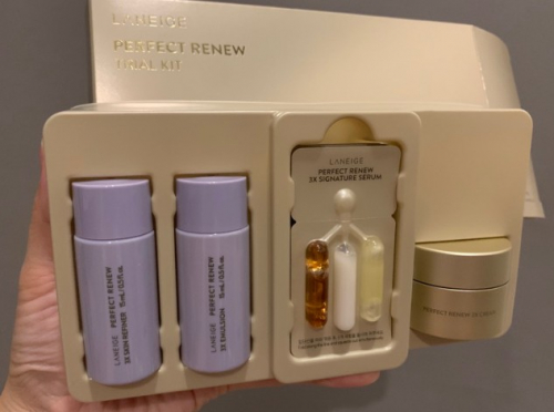 1. Тонер для лица LANEIGE Perfect Renew 3X Skin Refiner 15ml - Тонер придающий энергию коже, восстанавливая её и увлажняя благодаря содержанию керамидной воды. Керамидная вода имеет свойство глубокого проникновения и увлажнения в клетки кожи, оживляя и регенерируя их. Использование тоника также предотвращает появление морщин, делая кожу гладкой, живой и сияющей.