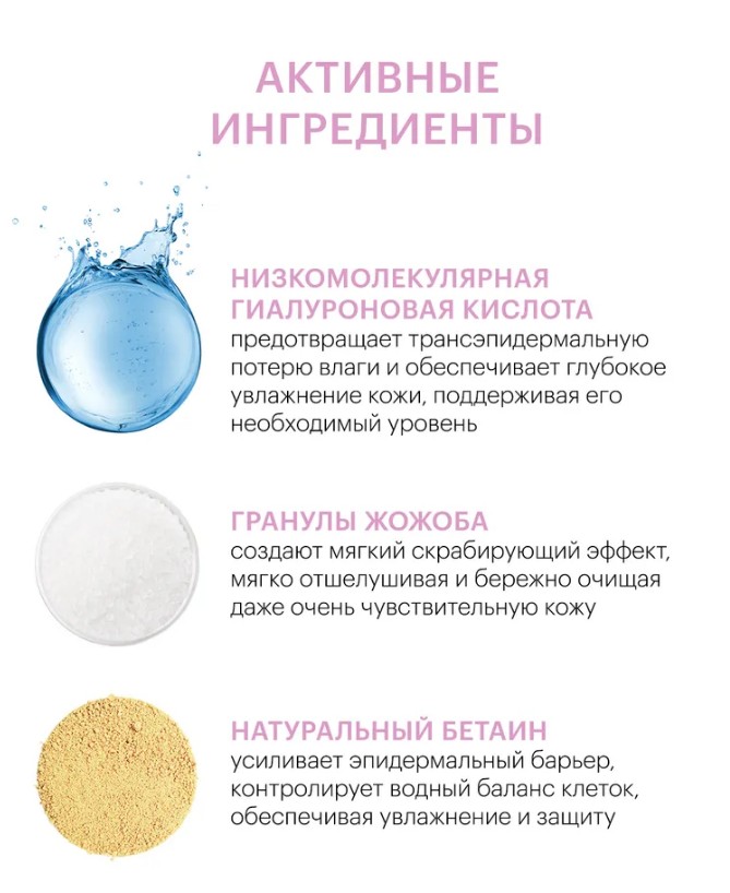 01.07.2027 Гель-гоммаж предназначен для ежедневного ухода за кожей любого типа, особенно подходит для чувствительной кожи. Является вторым этапом очищения кожи лица и идеальным дополнением к косметическим средствам LIBREDERM. Не создает ощущения стянутости кожи. Гранулы жожоба создают мягкий скрабирующий эффект, бережно отшелушивая и очищая даже очень чувствительную кожу. Низкомолекулярная гиалуроновая кислота обеспечивает глубокое увлажнение кожи. Натуральный бетаин усиливает эпидермальный барьер, контролирует водный баланс клеток, обеспечивая увлажнение и защиту. Как результат - сияющая мягкая кожа без раздражения. Способ применения: небольшое количество геля вспеньте в ладонях, нанесите на лицо, избегая области вокруг глаз, помассируйте и смойте водой.