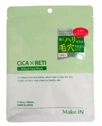 MAKE.IN CICA×RETI 10days Face Mask Маска для лица на основе центеллы азиатской и ретинола, пакет 10шт