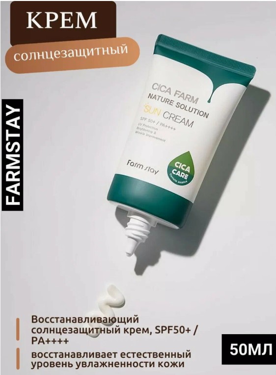 450рВосстанавливающий солнцезащитный крем, SPF50+ / PA++++ FarmStay Cica Farm Nature Solution Sun Cream, 50g