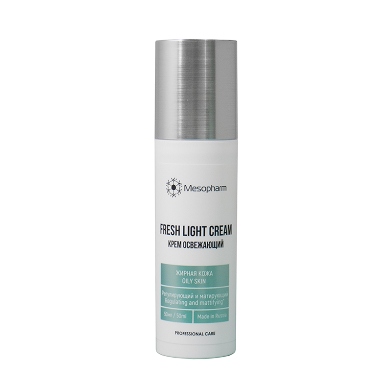 MESOPHARM ( МЕЗОФАРМ ) Крем освежающий с матирующим эффектом для жирной кожи лица FRESH: LIGHT CREAM — уникальное средство, препятствующее возникновению воспалительных элементов, одновременно подавляющее избыточное выделение кожного сала и загрязнение пор. Крем быстро снимает покраснения на коже, нормализует обменные процессы и повышает барьерные свойства. Компоненты, входящие в состав данной рецептуры, моментально придают коже безупречный вид даже без макияжа. Рекомендуется для комбинированной и жирной кожи.