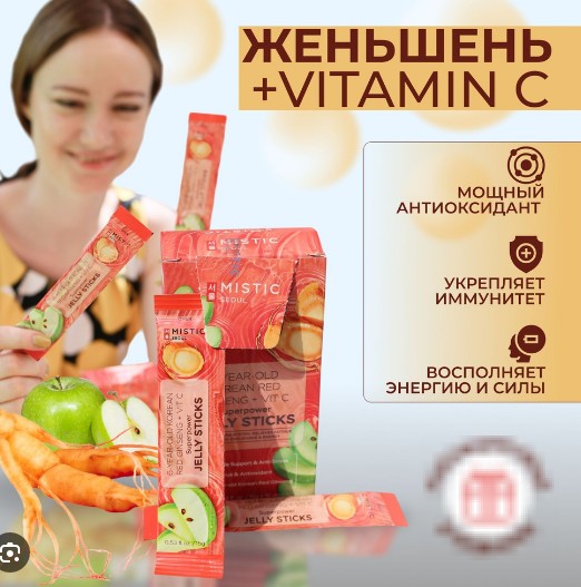 Желейные палочки с экстрактом красного корейского женьшеня 6-летней выдержки и витамином С - это идеальное сочетание для укрепления иммунитета и повышения энергии. Красный женьшень помогает бороться со стрессом, улучшает память и концентрацию, а также повышает выносливость. Витамин C укрепляет защитный барьер кожи и обеспечивает поддержку иммунитета. Продукт имеет низкокалорийный состав и приятный яблочный вкус. Палочки в удобном формате для поддержания энергии, здоровья и умственной деятельности!