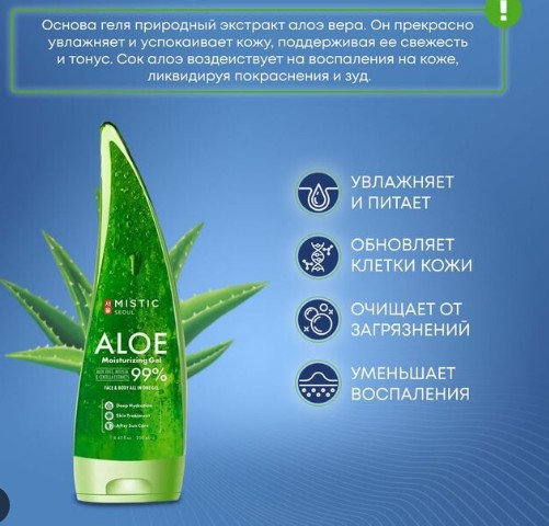 Ст. цена 399 р! MISTIC ALOE Shower Gel 99% Гель для душа с экстрактом Алоэ Вера 250мл