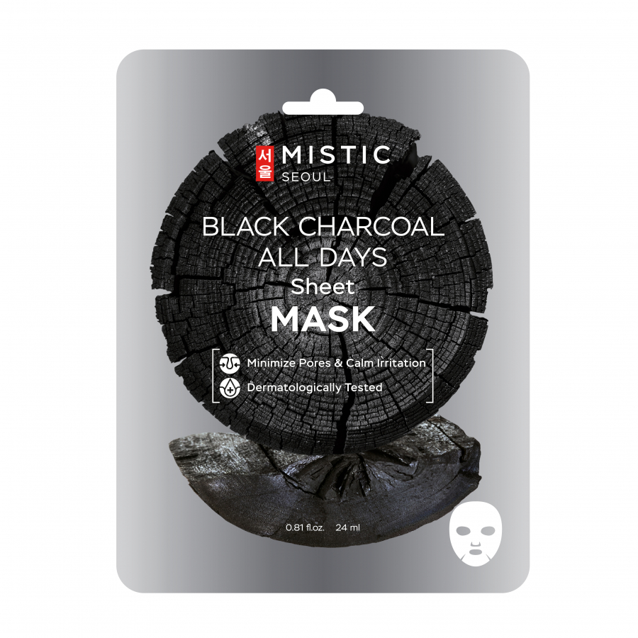 MISTIC BLACK CHARCOAL ALL DAYS Sheet mask Тканевая маска для лица с древесным углём 24мл