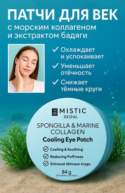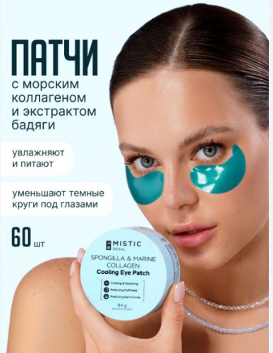 MISTIC SPONGILLA & MARINE COLLAGEN COOLING EYE PATCH Охлаждающие патчи с морским коллагеном и экстрактом бадяги 84г (60шт/30пар)