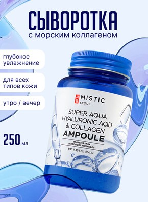 MISTIC SUPER AQUA HYALURONIC ACID & COLLAGEN AMPOULE Глубокоувлажняющая сыворотка с гиалуроновой кислотой и коллагеном 250мл