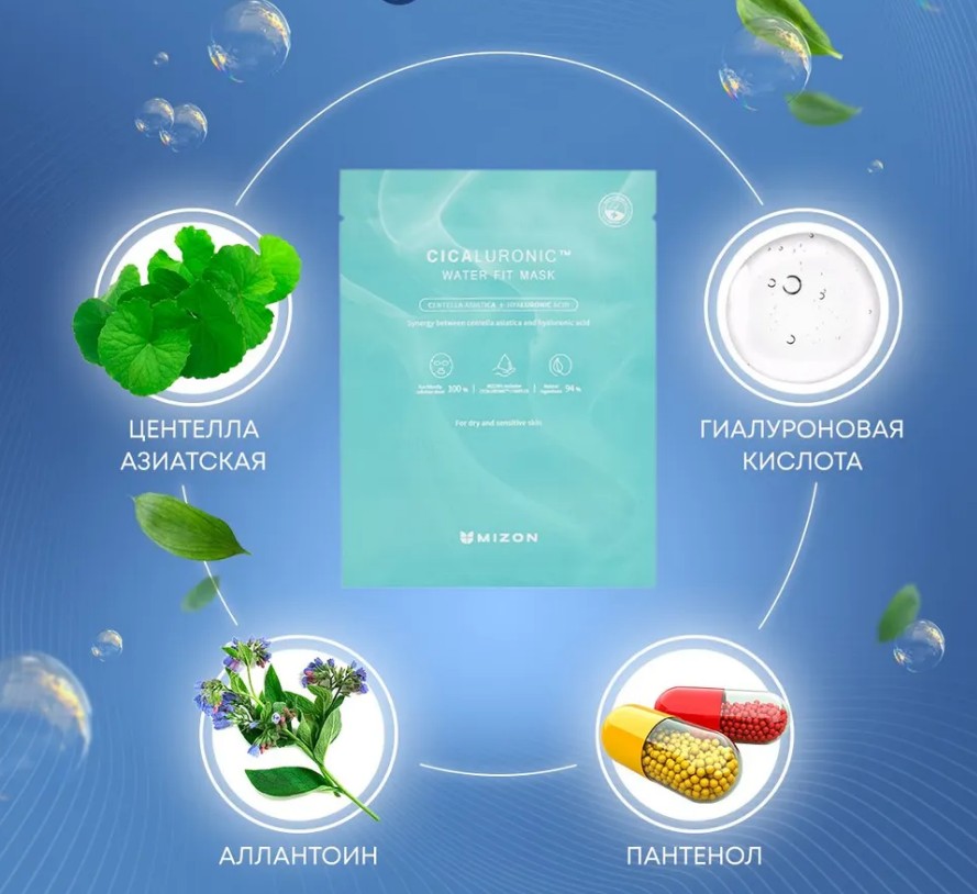 MIZON CICALURONIC WATER FIT MASK Тканевая маска для лица с экстрактом центеллы азиатской и гиалуроновой кислотой 24гр
