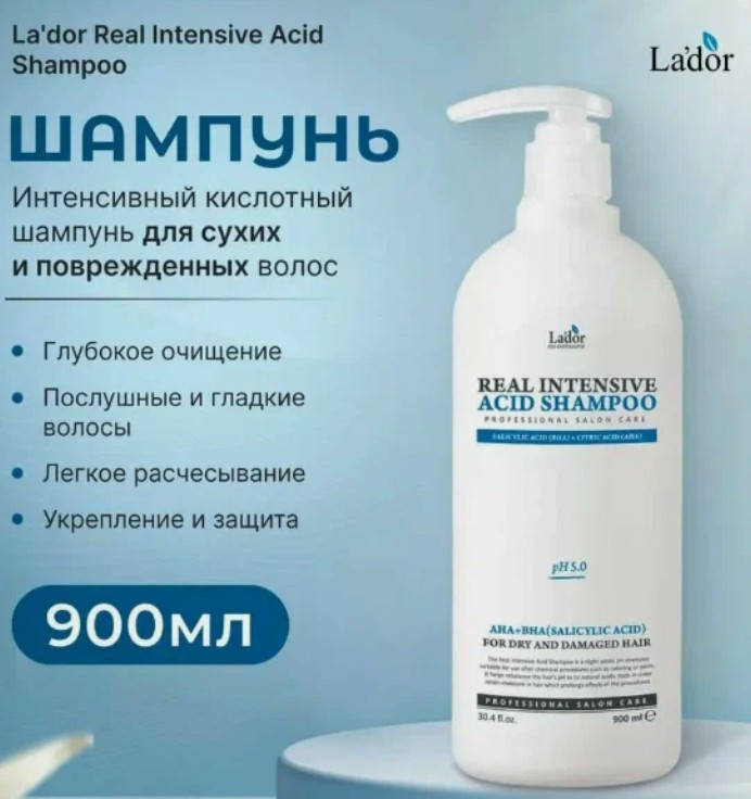 1200рLa'dor REAL INTENSIVE ACID SHAMPOO Интенсивный кислотный шампунь для сухих и повреждённых волос 900мл