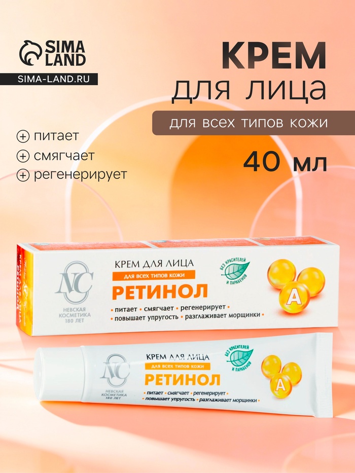 Крем для лица «Невская косметика», ретинол, питание, смягчение, регенерация, 40 мл