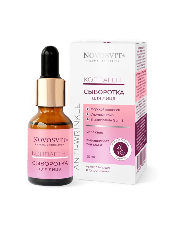 Сыворотка для лица NOVOSVIT коллаген, против морщин и сухости кожи, 25 мл