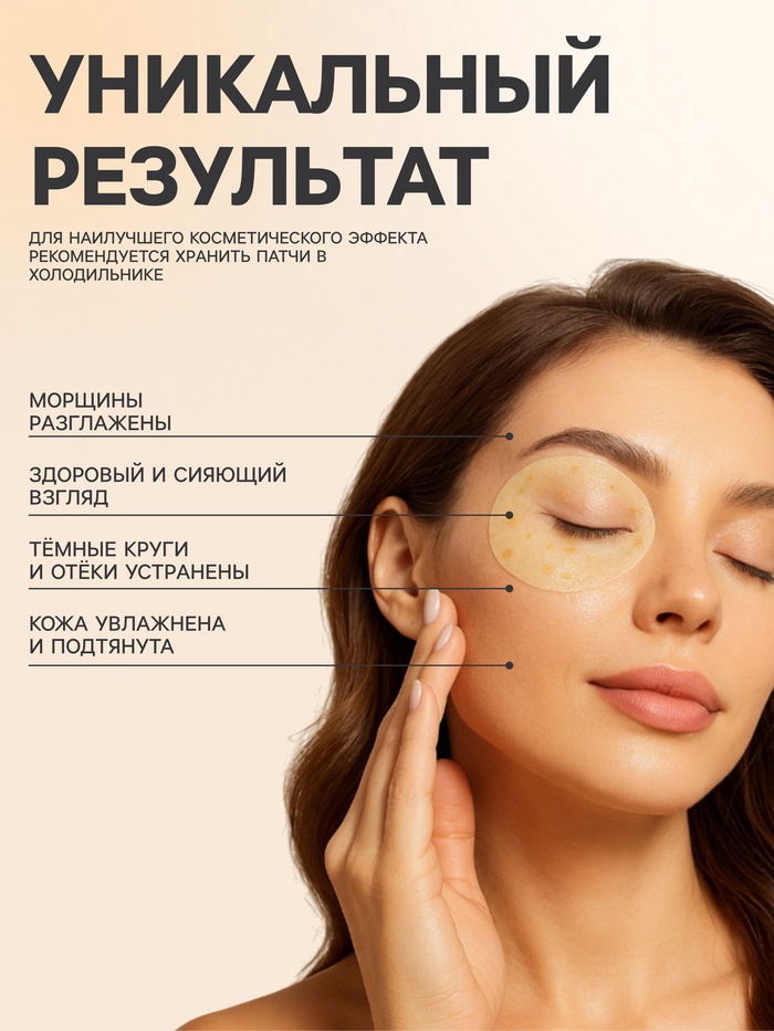 Способ применения: извлеките патчи с помощью лопаточки и нанесите на очищенную кожу вокруг глаз. Снимите через 20–30 минут и сделайте лёгкий массаж подушечками пальцев. Для достижения наилучшего эффекта храните упаковку с патчами в холодильнике.