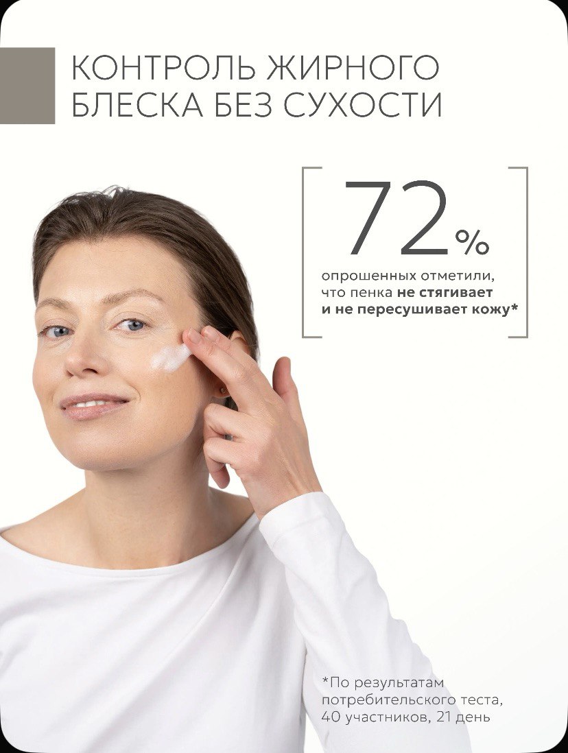 Пенка предназначена для ежедневного очищения жирной и комбинированной кожи. Она эффективно удаляет загрязнения и излишки себума, не нарушая физиологический рН и не вызывая ощущения стянутости. Мягкая моющая основа деликатно очищает и не раздражает глаза, подходит для утреннего и вечернего применения.