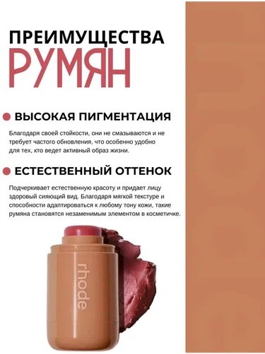 Кремовые румяна Rhode - станут не заменимым дополнением к вашему макияжу. Они идеально подходят для создания естественного румянца и подчеркивания естественной красоты вашего лица. Румяна в стике представлены в дизайне от бренда Rhode. Удобная упаковка обеспечивает комфортное нанесения продукта на кожу. Румяна для женщин станут настоящей находкой для тех, кто ищет легкое и быстрое решение для создания свежего и ухоженного образа на каждый день. Rhode румяна и их палитра оттенков позволяет каждой женщине выбрать свой идеальный тон, подчеркивающий индивидуальность и шарм. Нежные натуральные оттенки обеспечивают возможность варьировать интенсивность румянца в зависимости от времени суток и ситуации, будь то деловая встреча или романтический ужин. Румяна роуд легко адаптируются под любой цвет кожи.​