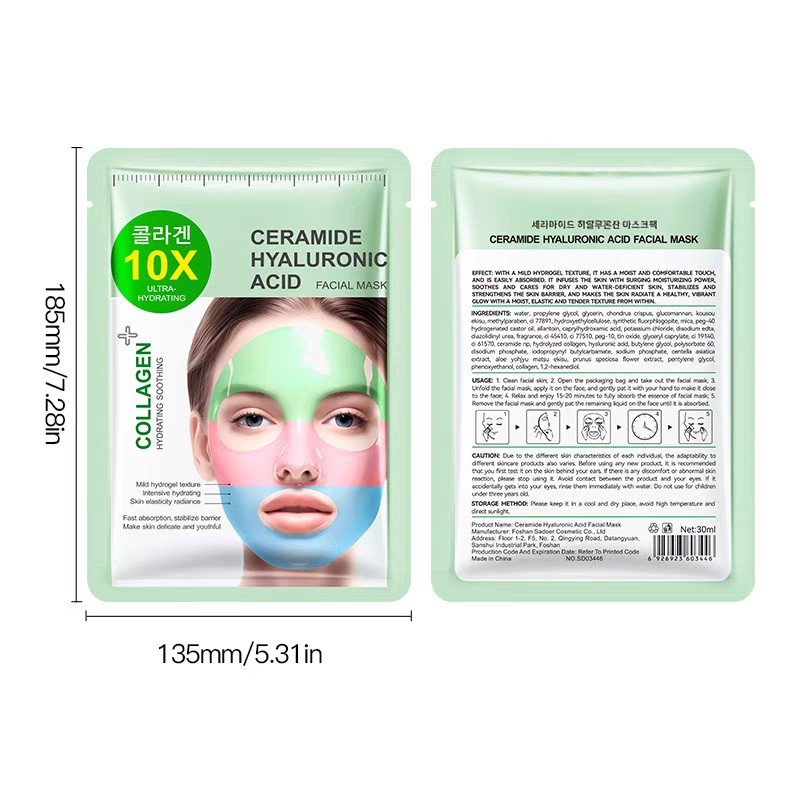SADOER Гидрогелевая маска для лица с гиалуроновой кислотой и керамидами 10X ULTRA GIDRATING