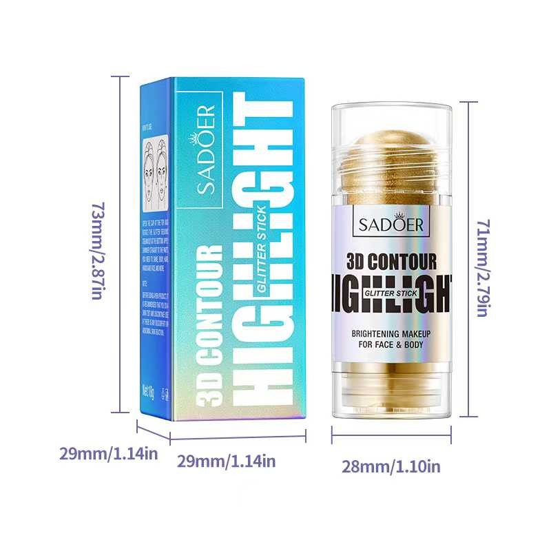 SADOER ​Хайлайтер-стик для сияющего покрытия 3D Contour Highlighter, тон 03