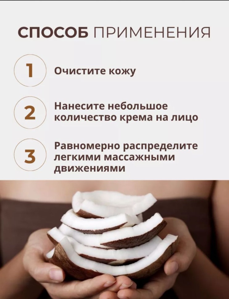 Поприветствуйте крем для лица с кокосом - идеальное средство для поддержания здоровья и красоты вашей кожи. Этот натуральный и органический крем обогащен питательными веществами и витаминами, которые делают его идеальным выбором для ухода за вашей кожей.
