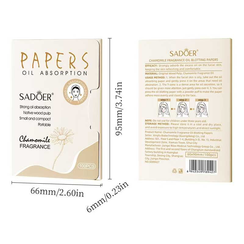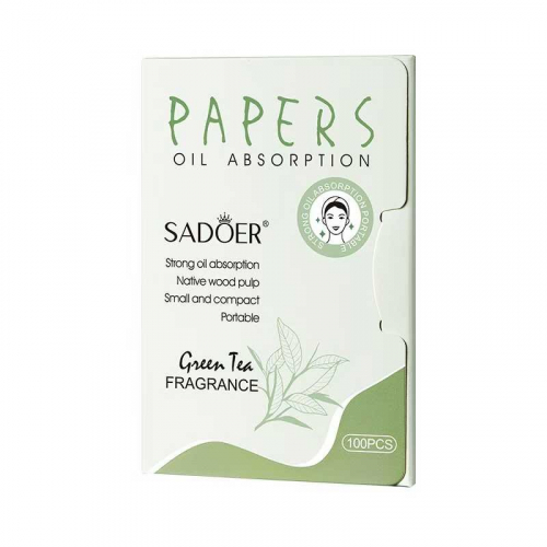 SADOER Матирующий салфетки против жирного блеска с ароматом зеленого чая, 100 шт.