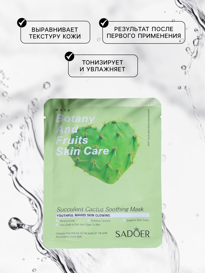 Тканевая маска для лица с экстрактом кактуса, увлажняющая